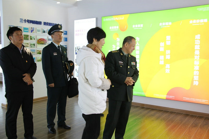 2020年12月16日上午,漯河市軍分區(qū)政委熊金敏一行到公司參觀指導(dǎo)工作。謝總陪同參觀并介紹公司發(fā)展情況。