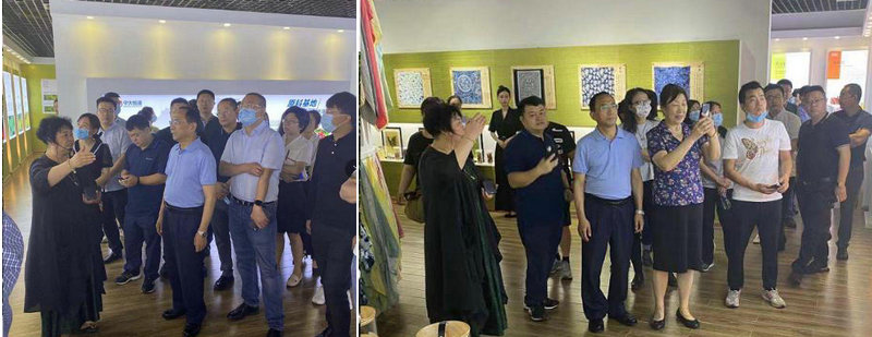 在天然植物印染展廳,五彩斑斕的產(chǎn)品展示,引得參觀人員的濃厚興趣。文總饒有風(fēng)趣的介紹,嘉賓神情專注的觀看。