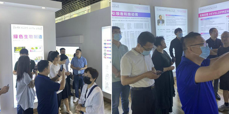 在綠色生物制造展廳,與會嘉賓對公司綠色循環(huán)發(fā)展模式表現(xiàn)出巨大興趣,紛紛拍照留念。